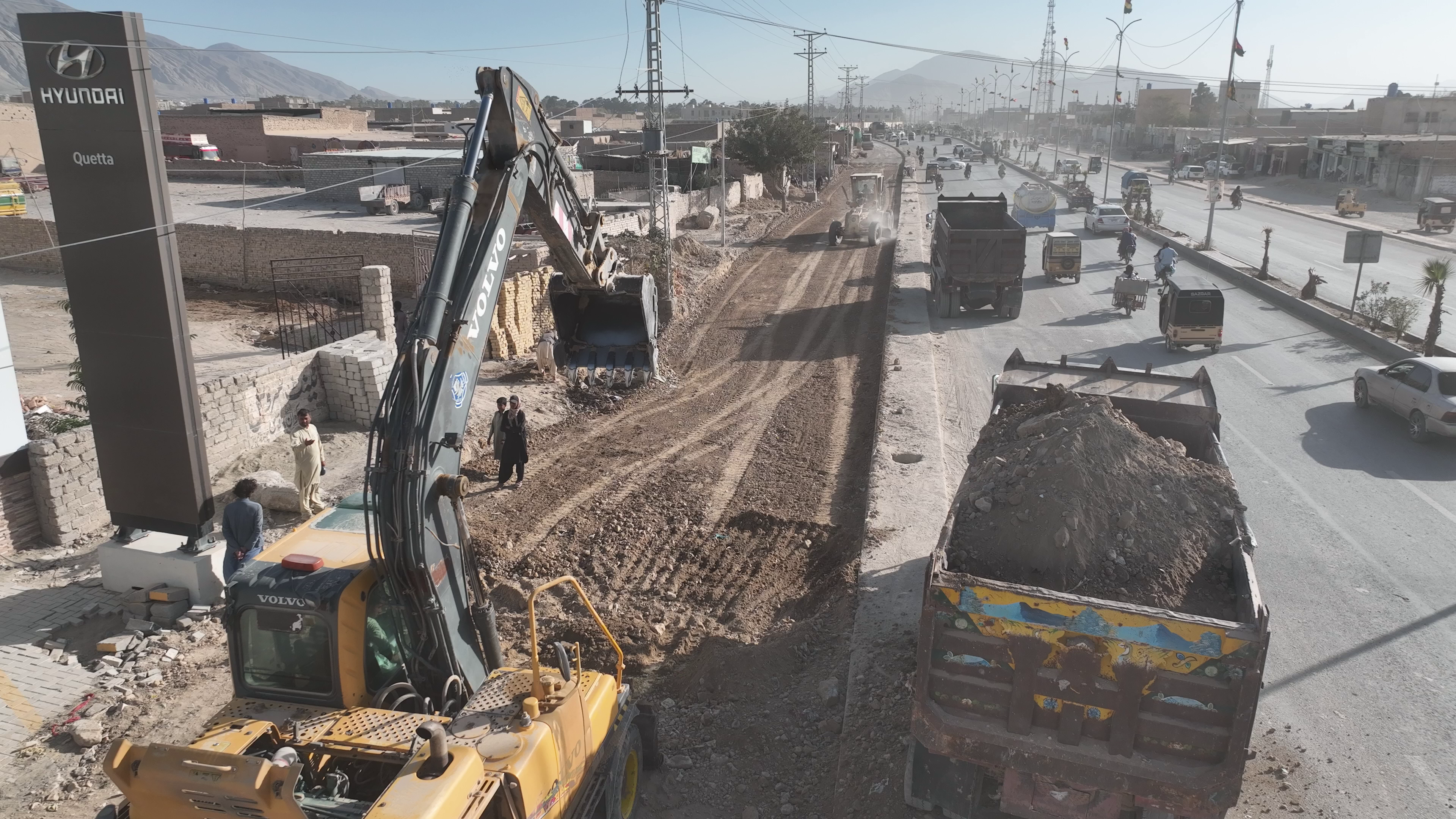 Clearing aligning and reconstruction of sariab road Phase-II (Service Road) The project “Clearing, Aligning, and Reconstruction of Sariab Road Phase-II (Service Road)” is a continuation of the successful development of Sariab Road. In Phase-I, the main carriageway was constructed beautifully and to a high standard, greatly improving traffic flow and connectivity. Now, in Phase-II, the service road is under construction to further enhance accessibility and support local traffic. This phase involves clearing, realigning, and reconstructing the service road to address issues of surface damage, encroachments, and poor drainage. Once completed, it will ensure smooth local movement, improved safety, and better integration with the main Sariab Road.